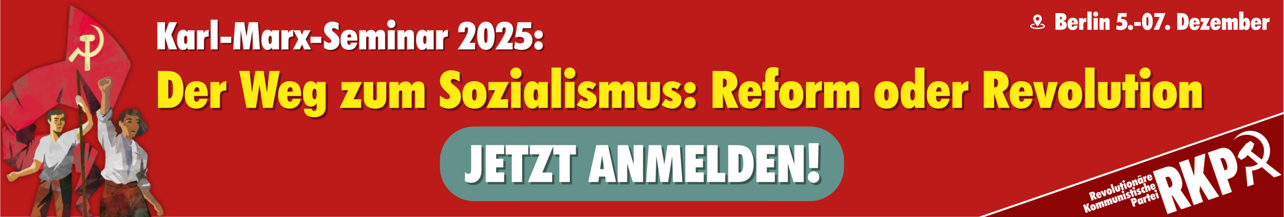 TRITT EIN! EMPFEHLUNGEN Italienischer Generalstreik: Eine dramatische Wende in der Weltlage Revolutionaere Kommunistische Internationale 8. Oktober 2025 Demokratie retten oder Sozialismus erkämpfen? Alexander Kalabekow 29. September 2025 Ihr Frieden bedeutet Krieg – unser Weg zum Frieden ist Revolution! Lukas Kutschera 19. September 2025 NEUSTE ARTIKEL NRW-Wahl zeigt, warum die AfD erfolgreich ist Michele Rocco Troccolo 15. Oktober 2025 Blockieren wir alles! Die Bewegung ausweiten, die Macht der Arbeiterklasse organisieren Partito Comunista Rivoluzionario (italienische Sektion der RKI) 14. Oktober 2025 Wie KI den Klassenkampf anheizt Andreas Krone 14. Oktober 2025 Die Degeneration und der Zusammenbruch der Vierten Internationale Revolutionaere Kommunistische Internationale 13. Oktober 2025 Angriffe auf Zivilklausel: Unis sollen bei der Aufrüstung mithelfen Franz Rieger 13. Oktober 2025 Die Bedeutung von Jeremy Corbyns neuer Partei und die Haltung der Kommunisten zu ihr Alan Woods 12. Oktober 2025 Die Bedeutung des Waffenstillstands in Gaza Revolutionaere Kommunistische Internationale 11. Oktober 2025 Der erste Weltkongress der Revolutionären Kommunistischen Internationale Revolutionaere Kommunistische Internationale 11. Oktober 2025 Wie trägt die RKP ein sozialistisches Programm in die Unis? Julius Scheffler 10. Oktober 2025 WEITERE ARTIKEL “Ohne revolutionäre Theorie kann es keine revolutionäre Bewegung geben!” V.I. LENIN Theorie Die Degeneration und der Zusammenbruch der Vierten Internationale ByRevolutionaere Kommunistische Internationale 13. Oktober 2025 Sollten Kommunisten die DDR verteidigen? ByTure Hirche 3. Oktober 2025 Demokratie retten oder Sozialismus erkämpfen? ByAlexander Kalabekow 29. September 2025 WEITERE ARTIKEL SCHLIESS DICH DEN KOMMUNISTEN AN! SENDEN